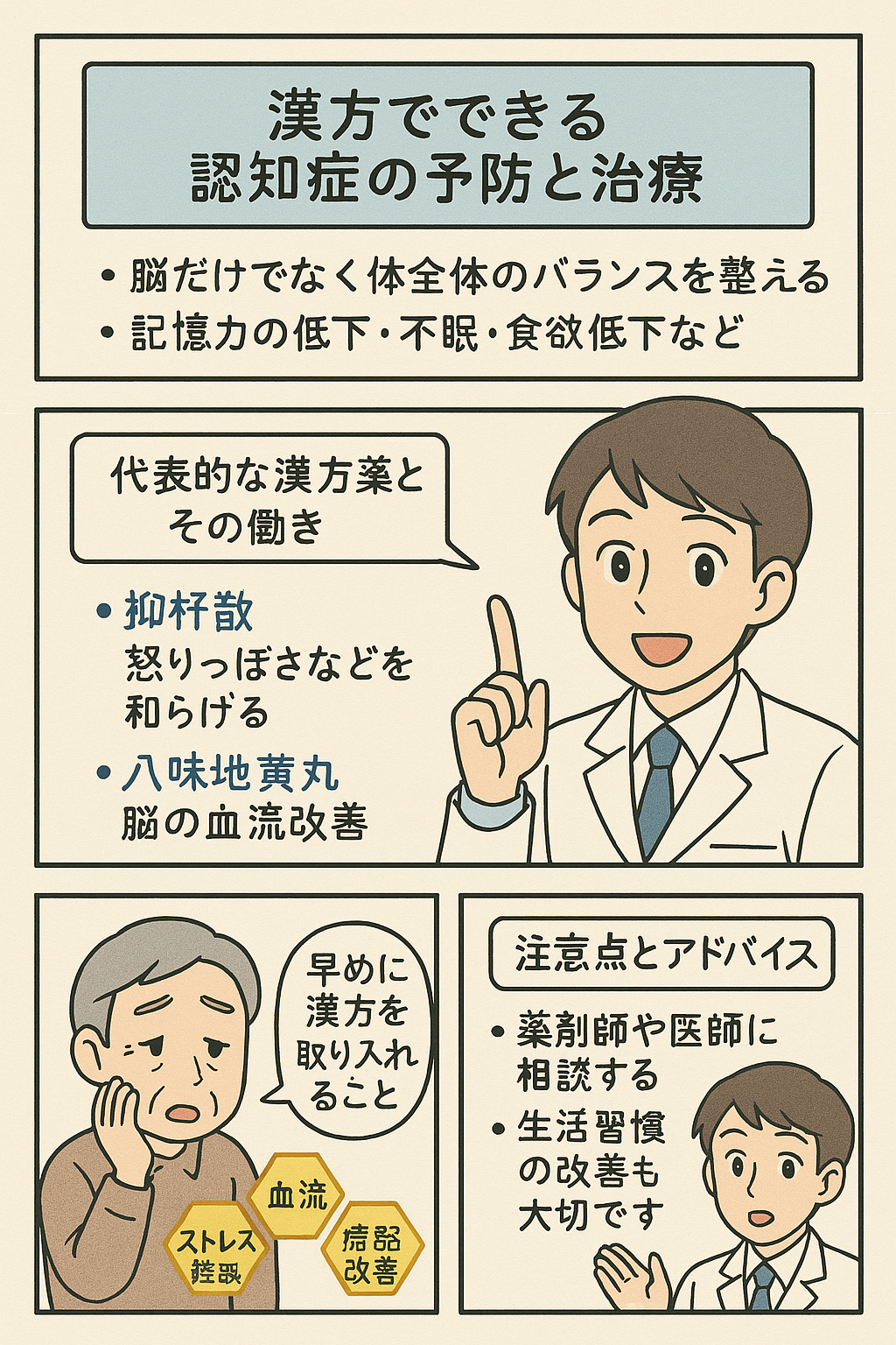 漢方は「認知症そのものを治す薬」ではありませんが、心と体を整えて、症状の悪化を防ぐサポートができます。薬剤師としては、一人ひとりの体質や生活に寄り添いながら、最適な漢方選びのお手伝いをしています。